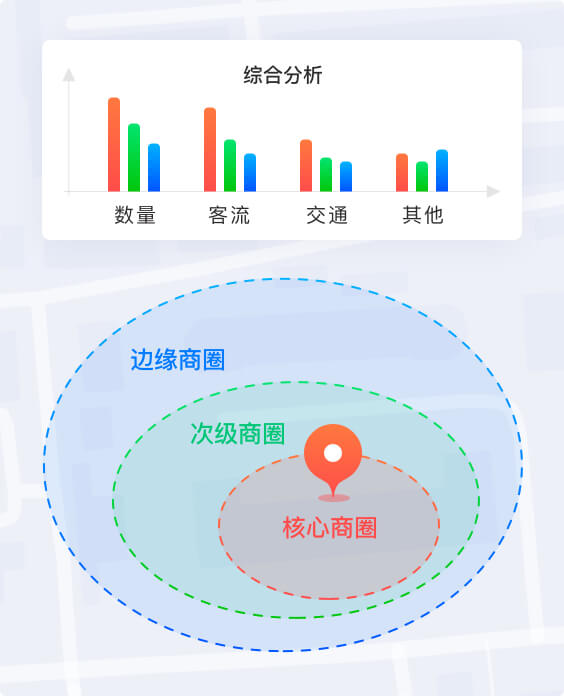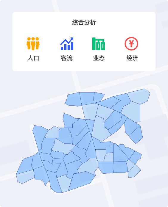 基于大数据与地理位置服务能力,以消费者数据为基础,重塑人、货、场的精细化运营,数字化赋能品牌渠道战略布局,快速识别空白市场机会,追踪竞品布局,门店点址有效评估,为品牌规划选址统一标准,提供一站式数据解决方案。