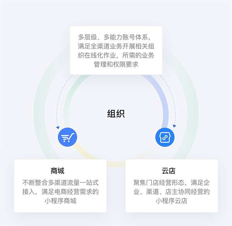 基于门店业务类型和合作模式,进行云店复刻。让店主在权、财、物上拥有自主权,打消业务顾虑,同时提供数字化能力,提效代理商的数字零售力,降低业务参与门槛